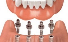 One method of replacing multiple missing teeth is to use dental implants to replace each tooth. For a few teeth this may be a good option, but for many missing teeth this may be too expensive. Implant-supported bridges or partial dentures may be a better alternative.