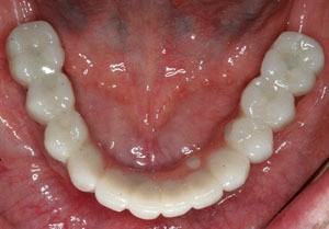 Full Lower Bridge supported by 8 implants. It's like having your entire jaw of teeth back!